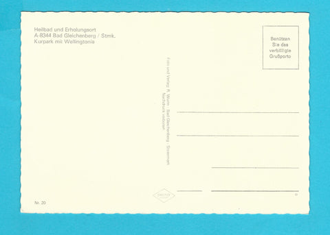 AK Bad Gleichenberg. Kurpark mit Wellingtonia. Ungelaufen. Großformat. Verlag: Wurm. Nummeriert: 20. Zustand: gut.
