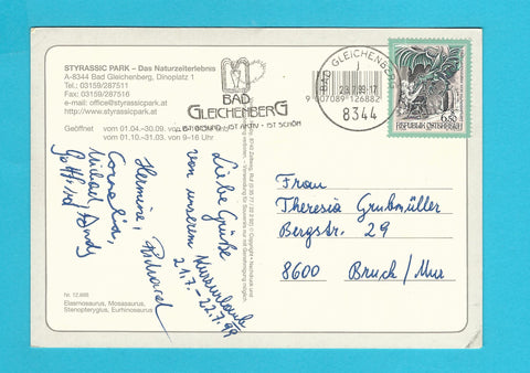 AK Bad Gleichenberg. Styrassic Park. Gelaufen. Großformat. Verlag: Hruby. Nummeriert: 12688. Zustand: rechtes oberes und linkes unteres Eck geknickt.