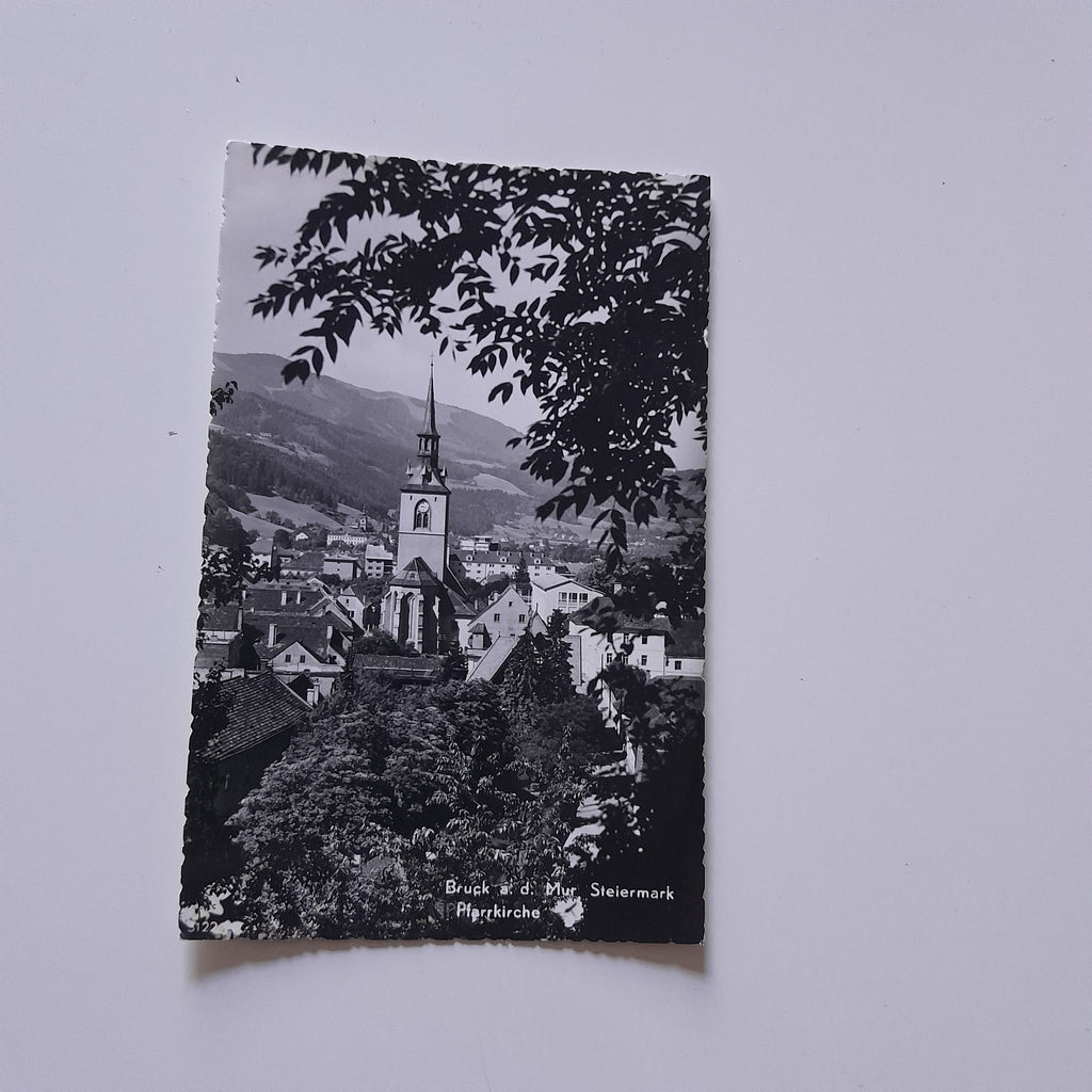 AK Bruck an der Mur. Pfarrkirche. Gelaufen, aber Briefmarke wurde entfernt. Kleinformat. Verlag: Kellner. Nummeriert: 3122. Zustand: gut.
