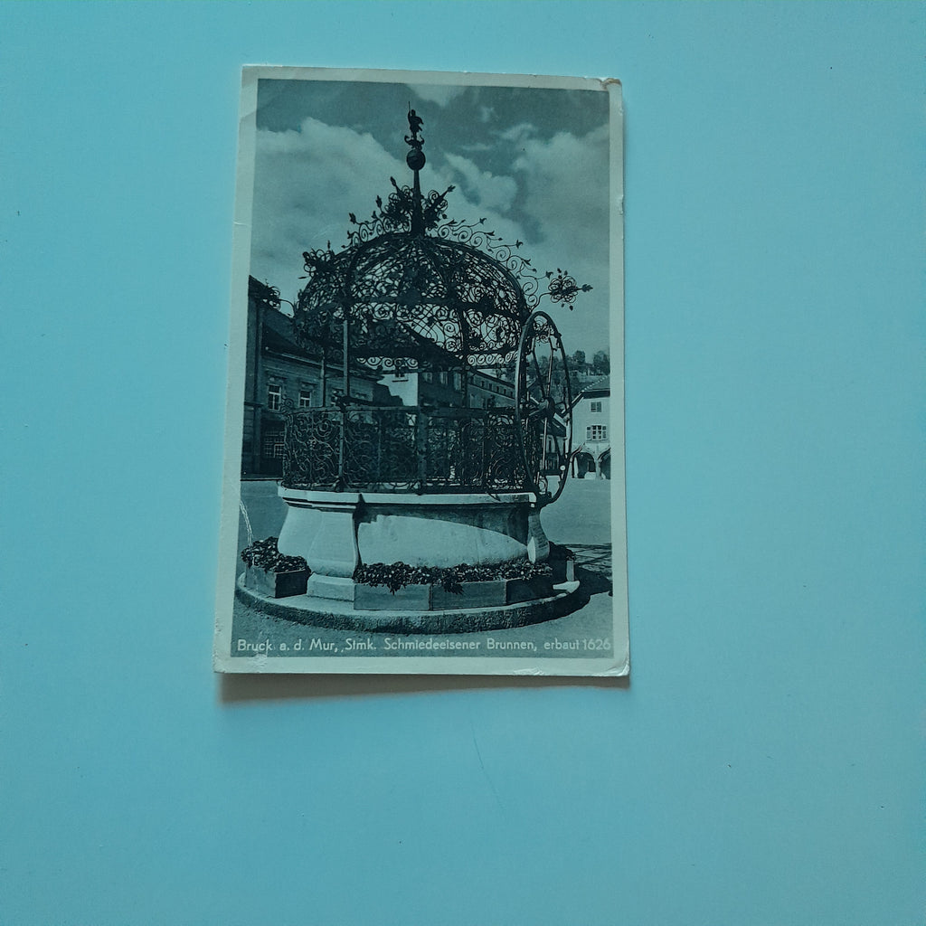 AK Bruck an der Mur. Schmiedeeiserner Brunnen. Gelaufen. Kleinformat. Verlag: Ledermann. Nummeriert: 41576. Zustand: Ecken geknickt.