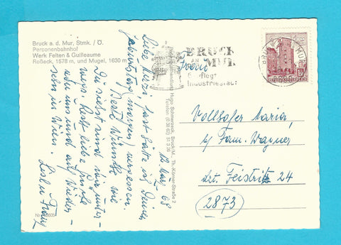 AK Bruck an der Mur Personenbahnhof Werk Felten & Guilleaume. Gelaufen. Großformat. Verlag: Schmerreck. Nummeriert: 16605. Zustand: gut.