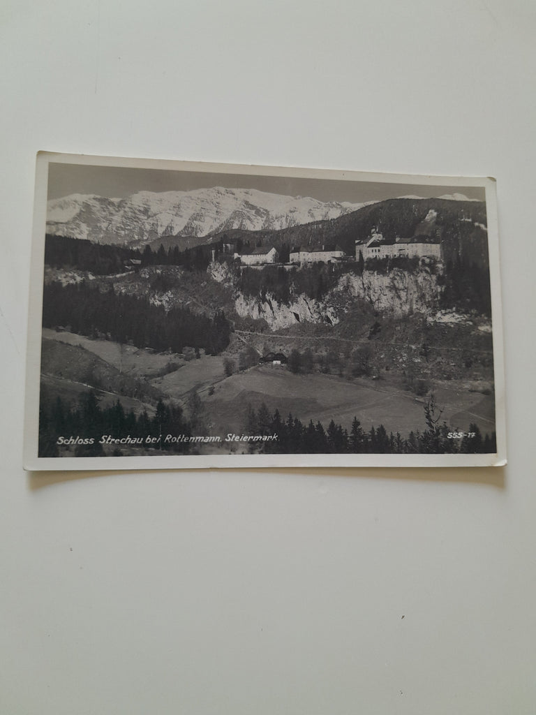 AK Schloss Strechau bei Rottenmann. (1938/39) Ungelaufen. Kleinformat. Verlag: Frank. Nummeriert: 555-17. Zustand: gut, rechtes unteres Eck geknickt.