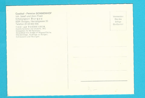AK Burgau. Gasthof Pension Sonnenhof. Inh. Josef und Anni Postl. Herrengasse 20. Ungelaufen. Großformat. Zustand: gut.