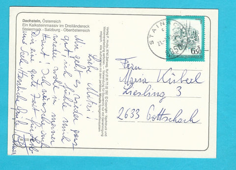 AK Dachstein. Gelaufen. Großformat. Verlag: Hruby. Nummeriert: 8907. Zustand: gut, rechtes oberes Eck angeknickt.