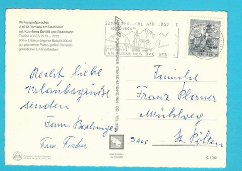 AK Dachstein-Südwand. Kulmberg-Schilift u. Rodelbahn. Gelaufen. Großformat. Verlag: Luftbild Scheurecker. Nummeriert: C 1090. Zustand: gut, rechtes unteres Eck geknickt.
