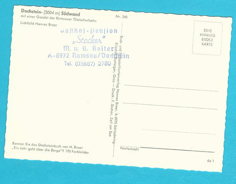 AK Dachstein Südwand mit einer Gondel der Ramsauer Gletscherbahn. Ungelaufen. Großformat. Verlag: Broer. Nummeriert: 240. Zustand: gut.