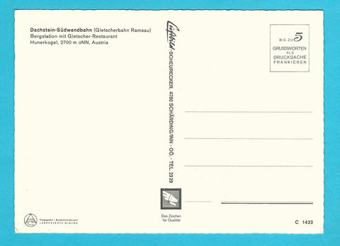 AK Dachstein-Südwandbahn. Bergstation mit Gletscher-Restaurant. Ungelaufen. Großformat. Verlag: Luftbild Scheurecker. Nummeriert: C 1423. Zustand: gut, wenig bestoßen.