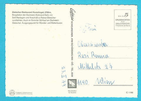 AK Dachstein-Südwandbahn. Gletscher-Restaurant Hunerkogel. Ungelaufen. Großformat. Verlag: Luftbild Scheurecker. Nummeriert: C 1190. Zustand: gut.