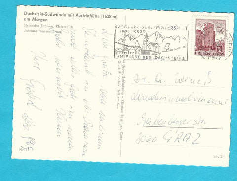 AK Dachstein-Südwände mit Austriahütte. Gelaufen. Großformat. Verlag: Broer. Nummeriert: 11. Zustand: gut.