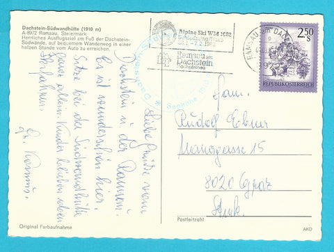 AK Dachstein-Südwandhütte. Gelaufen. Großformat. Zustand: gut.
