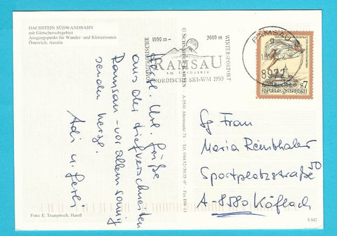 AK Dachsteinsüdwandbahn. Gelaufen. Großformat. Verlag: Schneider. Nummeriert: S 842. Zustand: gut.