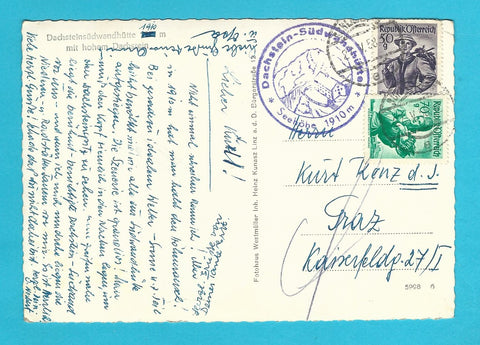 AK Dachsteinsüdwandhütte. Gelaufen. Großformat. Verlag: Westmüller. Zustand: Ecken und am linken Rand angeknickt.