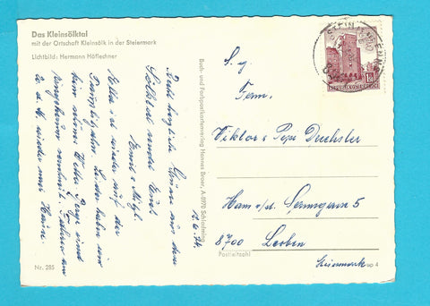 AK Das Kleinsölktal mit der Ortschaft Kleinsölk. Gelaufen. Großformat. Verlag: Broer. Nummeriert: 285. Zustand: gut, Knick am oberen Rand in der linken Hälfte.