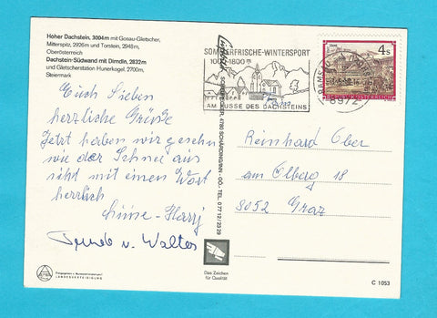 AK Der Dachstein Nord-/Süd. Gelaufen. Großformat. Verlag: Luftbild Scheurecker. Nummeriert: C 1053. Zustand: gut.