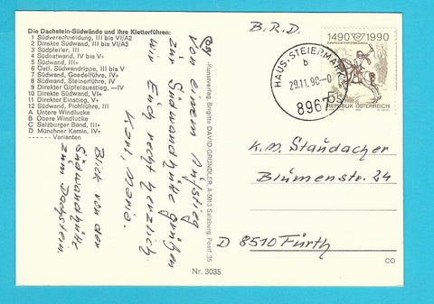 AK Die Dachstein-Südwände und ihre Kletterführen. Gelaufen. Großformat. Verlag: Cosy. Nummeriert: 3035. Zustand: gut, linkes oberes Eck angeknickt.
