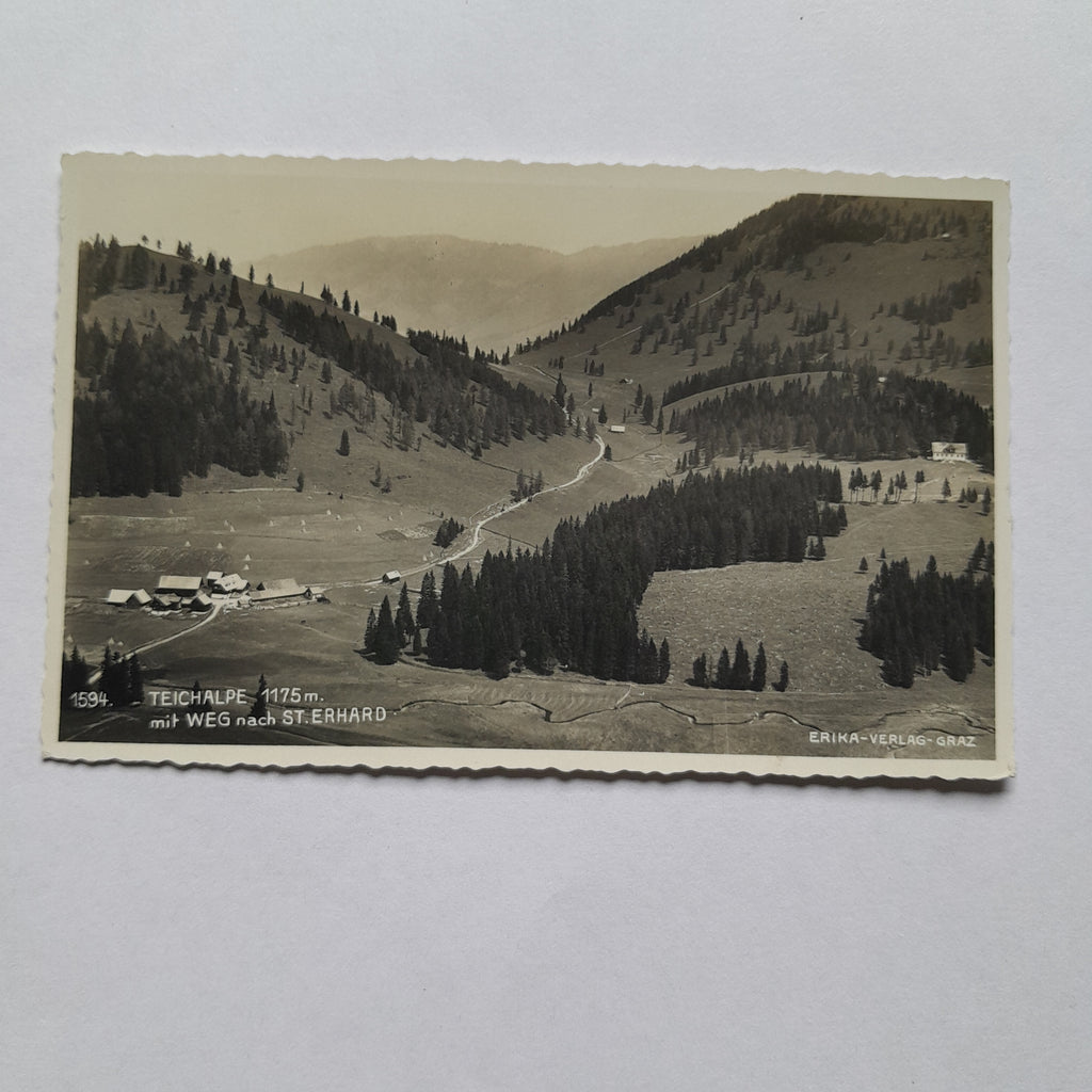 AK Teichalpe mit Weg nach St. Erhard. (1929) Gelaufen. Kleinformat. Verlag: Erika. Nummeriert: 1594. Zustand: gut.