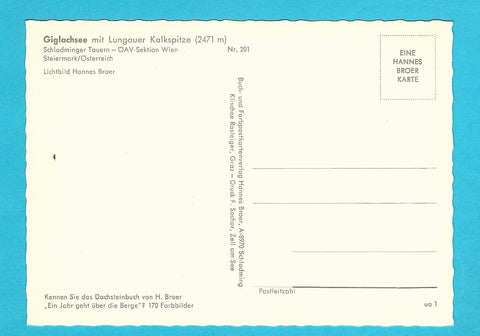 AK Giglachsee mit Lungauer Kalkspitze. Ungelaufen. Großformat. Verlag: Broer. Nummeriert: 201. Zustand: gut.