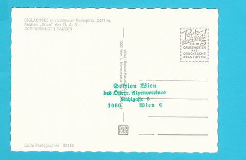 AK Giglachsee mit Lungauer Kalkspitze. Ungelaufen. Großformat. Verlag: Pietsch. Nummeriert: 82158. Zustand: gut.