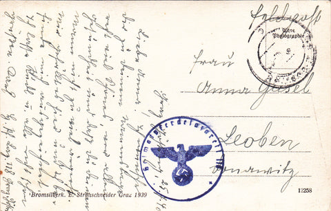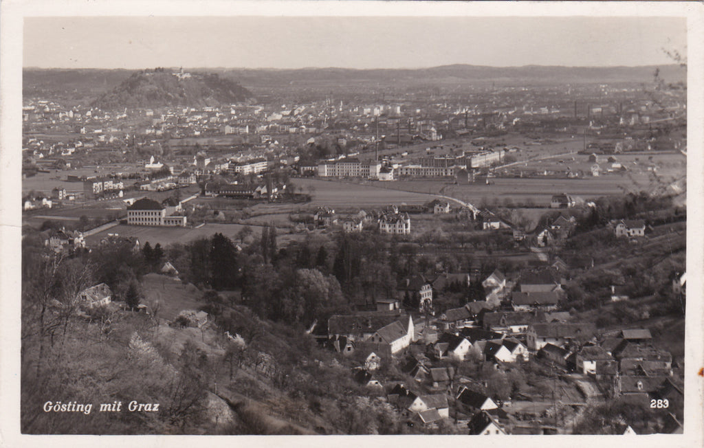 AK Gösting mit Graz. (1939) Gelaufen als Feldpost. Verlag: Strohschneider. Nummeriert: 283. Zustand: gut, leichte Läsuren.