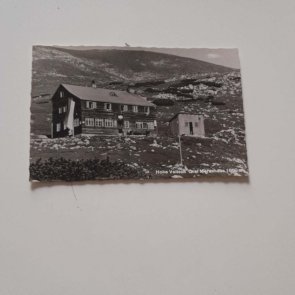 AK Hohe Veitsch. Graf Meran Haus. Gelaufen, aber Briefmarke wurde entfernt. Kleinformat. Verlag: Mark. Zustand: leicht bestoßen.