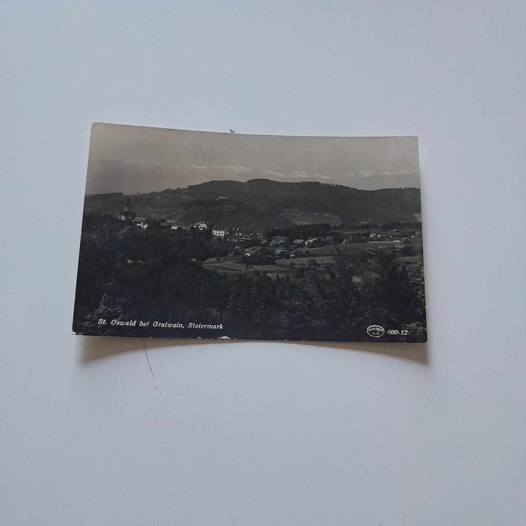 AK St. Oswald bei Gratwein. (1937-38) Gelaufen. Kleinformat. Verlag: Frank. Nummeriert: 600-12. Zustand: Kleberückstände an Rückseite, rechtes oberes Eck geknickt.