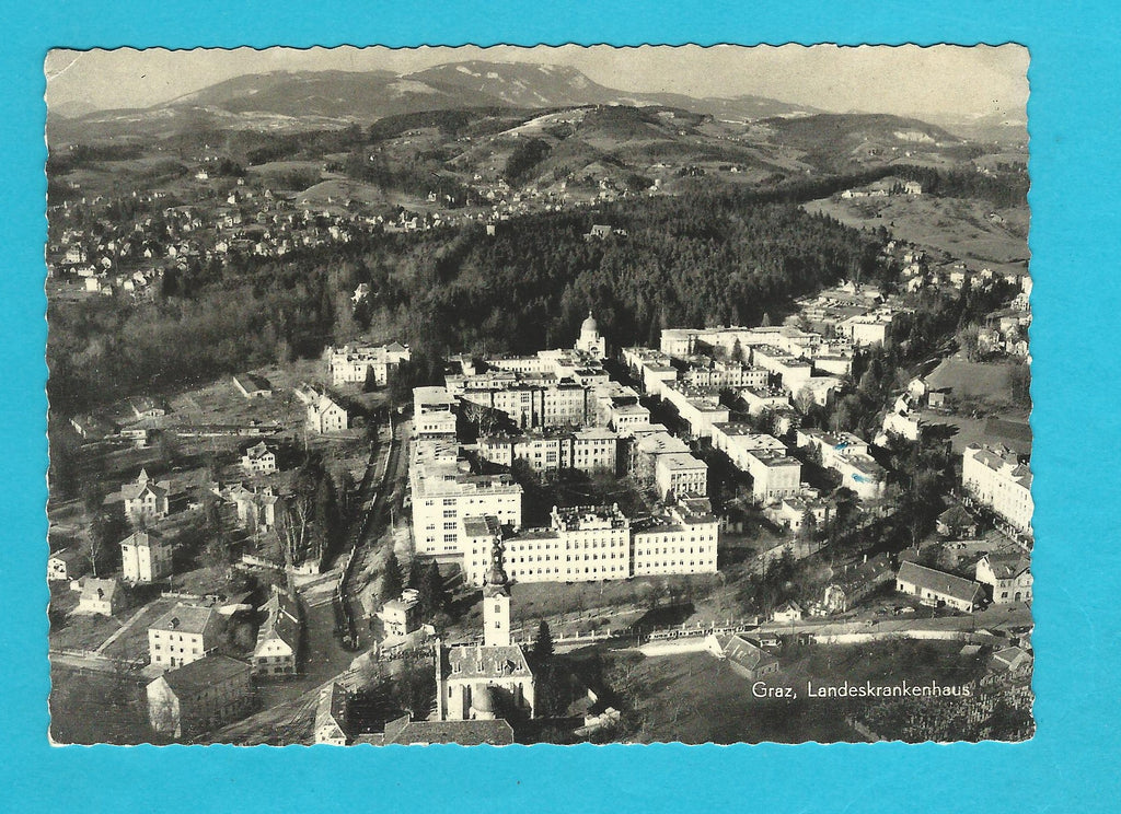 AK Graz. Landeskrankenhaus. (1967) Gelaufen. Großformat. Verlag: Knollmüller. Nummeriert: 501-303. Zustand: Ecken geknickt, Knick unter der Bildmitte.
