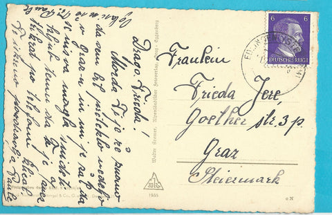 AK Graz - Blick vom Schloßberg. (1935) Gelaufen. Kleinformat. Verlag: Kramer. Zustand: gut, linkes oberes und rechtes unteres Eck geknickt.