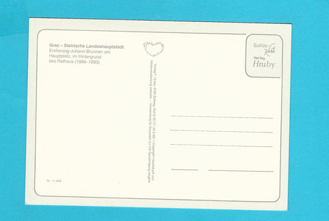 AK Graz. Erzherzog-Johann-Brunnen am Hauptplatz. Rathaus. Ungelaufen. Großformat. Verlag: Hruby. Nummeriert: 11448. Zustand: gut.