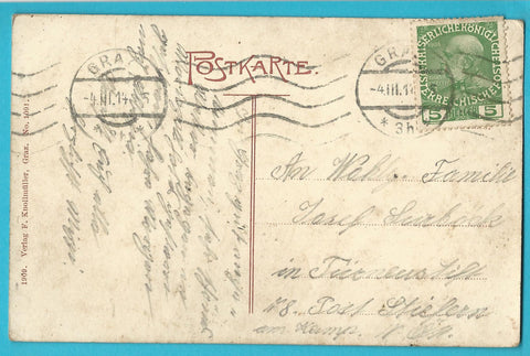 AK Graz gegen Norden (1909) Gelaufen. Kleinfomat. Verlag: Knollmüller. Nummeriert: 1091. Zustand: stärker bestoßen.