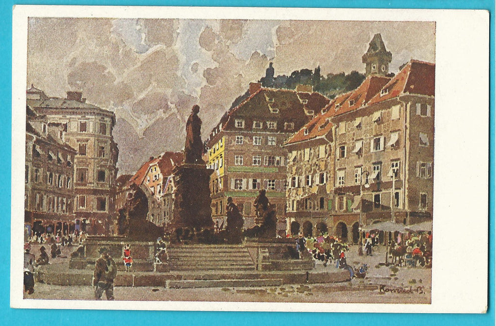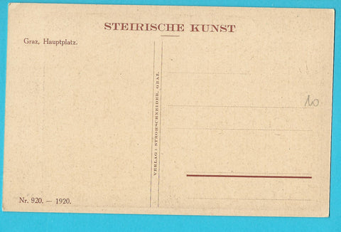 AK Graz. Hauptplatz. (1920) Ungelaufen. Kleinformat. Verlag: Strohschneider. Nummeriert: 920. Zustand: gut, rechtes oberes Eck angeknickt.