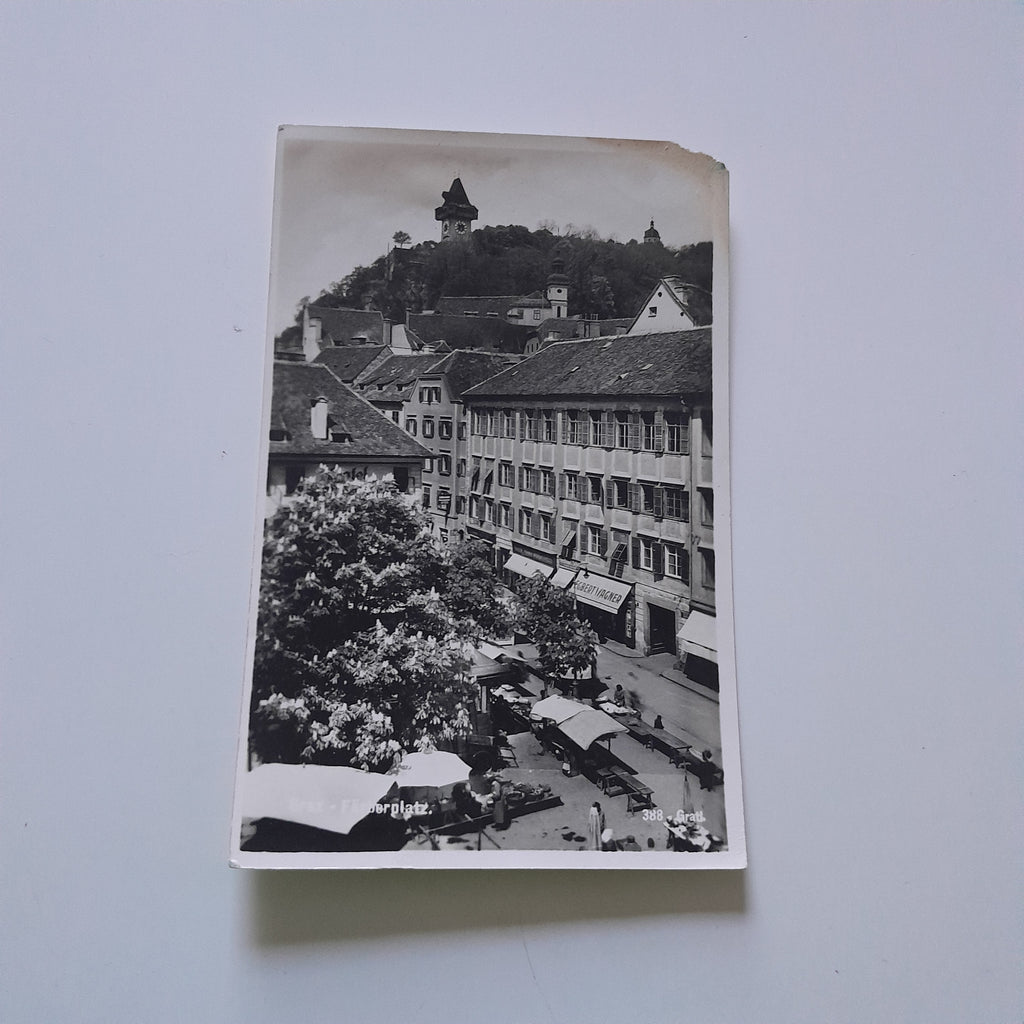 AK Graz. Färberplatz. Ungelaufen. Kleinformat. Verlag: Gratl. Nummeriert: 388. Zustand: stark bestoßen.