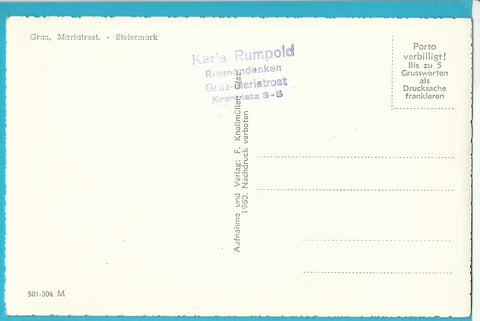 AK Graz, Mariatrost. (1960) Ungelaufen. Kleinformat. Verlag: Knollmüller. Nummeriert: 501-304 M. Zustand: gut.