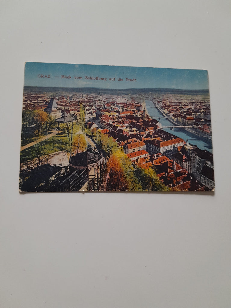 AK Graz. Blick vom Schlossberg auf die Stadt.(1918-19) Gelaufen. Kleinformat. Verlag: Frank. Nummeriert: 725/102. Zustand: gut.
