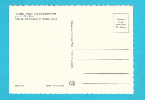 AK Graz. Propstei-, Haupt- und Stadtpfarrkirche zum Hl. Blut. Altar der Schmerzhaften Mutter Gottes. Ungelaufen. Großformat. Verlag: Kellner. Nummeriert: 3175/3 FW. Zustand: gut.