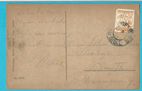 AK Graz, Schlossberg und Justizpalais. (1919/20) Gelaufen. Kleinformat. Verlag: Horneck. Nummeriert: 10003. Zustand: linkes oberes Eck und am rechten Rand geknickt, vergilbt.