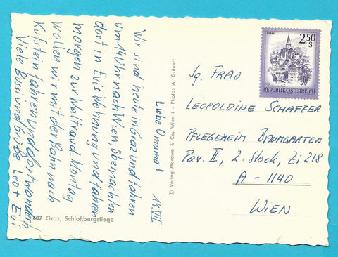 AK Graz. Schloßbergstiege. Gelaufen. Großformat. Verlag: Morawa & Co. Nummeriert: 407. Zustand: linke Ecken geknickt, Einrisse am linken Rand.