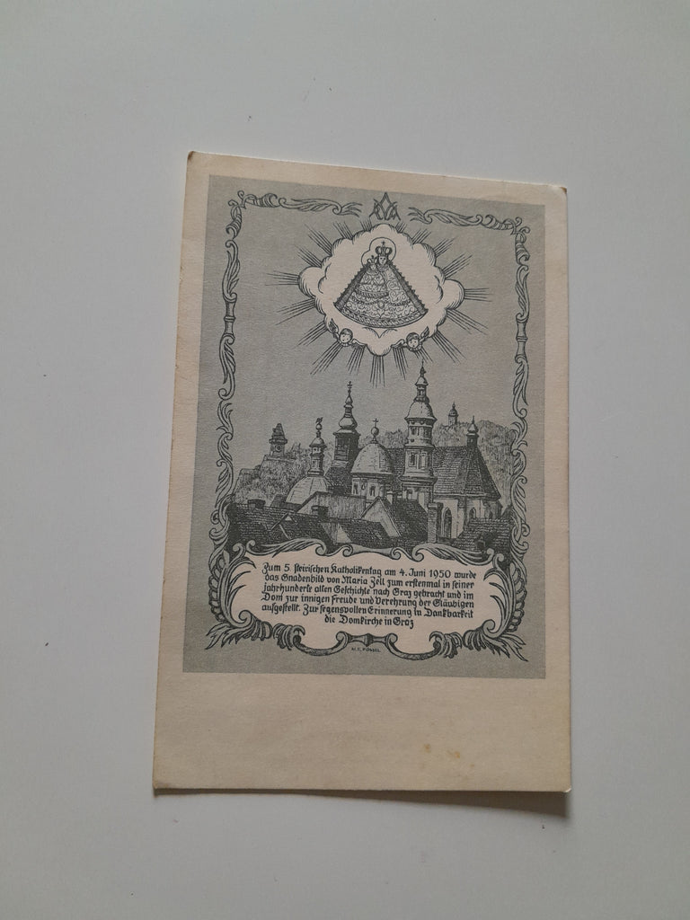 AK 5. Steirischer Katholikentag 4. Juni 1950. Gnadenbild Mariazell zum ersten Mal in Graz. Gelaufen, aber Briefmarke wurde entfernt. Kleinformat. Zustand: gut.