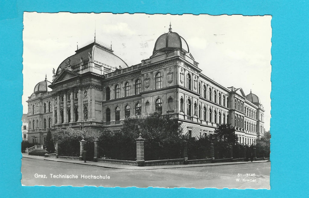 AK Graz. Technische Hochschule. Gelaufen. Großformat. Verlag: Kramer. Nummeriert: 51-3146. Zustand: rechtes unteres Eck geknickt, etwas fleckig.