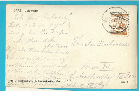 AK Graz. Universität. (1926) Gelaufen. Kleinformat. Verlag: Strohschneider. Zustand: gut.