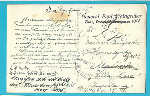 AK Graz von der Ruine Gösting. Gelaufen, aber Briefmarke wurde entfernt. Kleinformat. Verlag: Gratl. Nummeriert: 715. Zustand: linkes oberes Eck angeknickt, etwas fleckig.