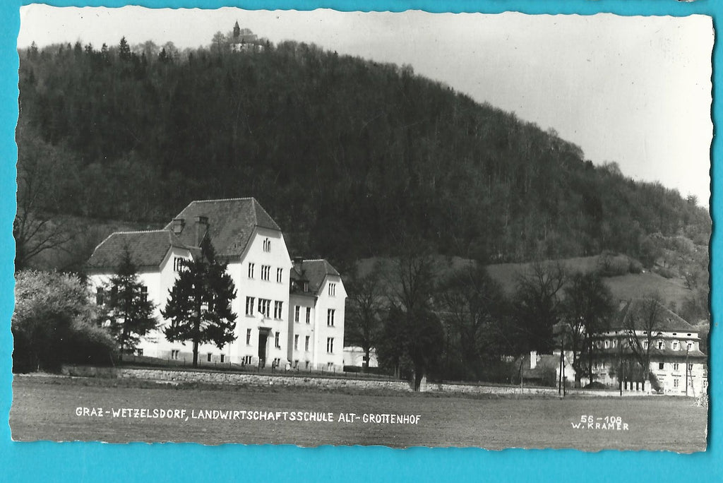 AK Graz -Wetzelsdorf, Landwirtschaftsschule Alt-Grottenhof. Gelaufen. Kleinformat. Verlag: Kramer. Nummeriert: 26-108. Zustand: gut.