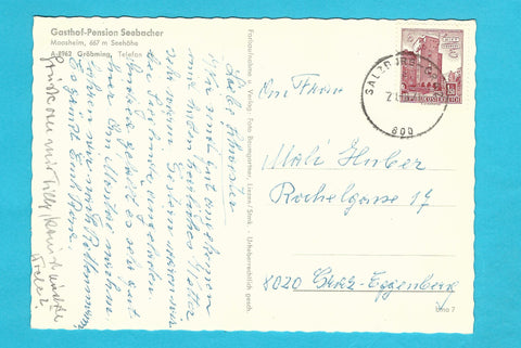 AK Gröbming. Gasthof Pension Seebacher. Moosheim. Gelaufen. Großformat. Verlag: Baumgartner. Zustand: gut, rechtes oberes Eck geknickt.