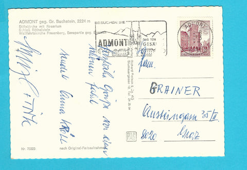 AK Gruss aus Admont. Gelaufen. Großformat. Verlag: Pietsch. Nummeriert: 75323. Zustand: gut, rechtes oberes Eck angeknickt.