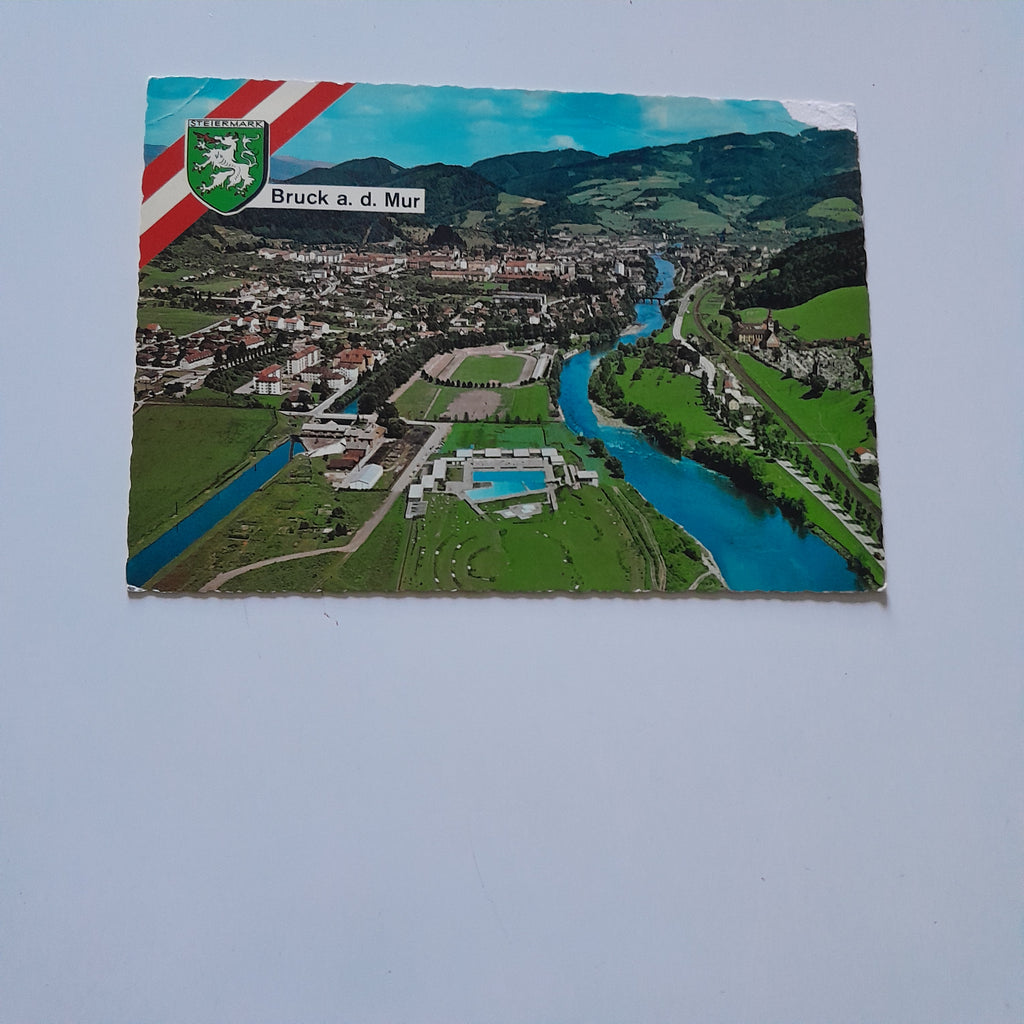 AK Bruck an der Mur. Gelaufen. Großformat. Verlag: Alpine Luftbild. Nummeriert: 58275. Zustand: stärker bestoßen.