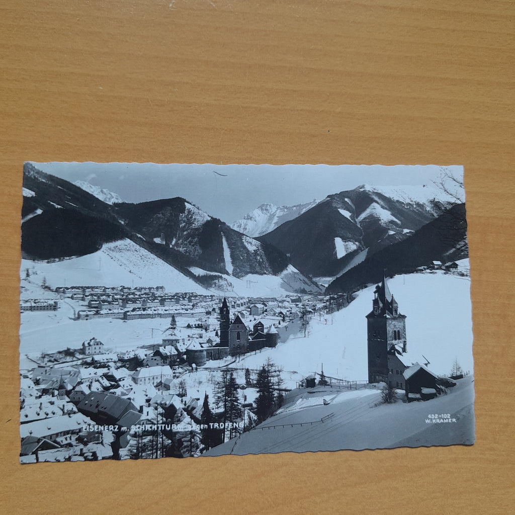 AK Eisenerz mit Schichtturm. Gelaufen. Kleinformat. Verlag: Kramer. Nummeriert: 452-102. Zustand: gut.