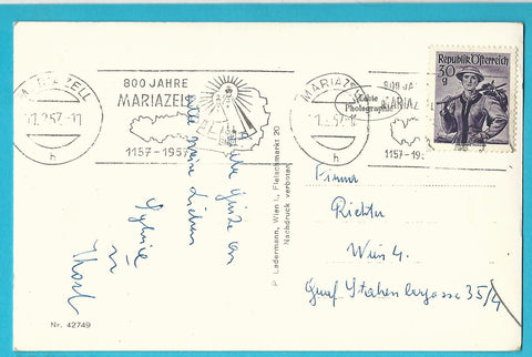 AK Gruss aus Mariazell. Gelaufen. Kleinformat. Verlag: Ledermann. Nummeriert: 42749. Zustand: leicht bestoßen.