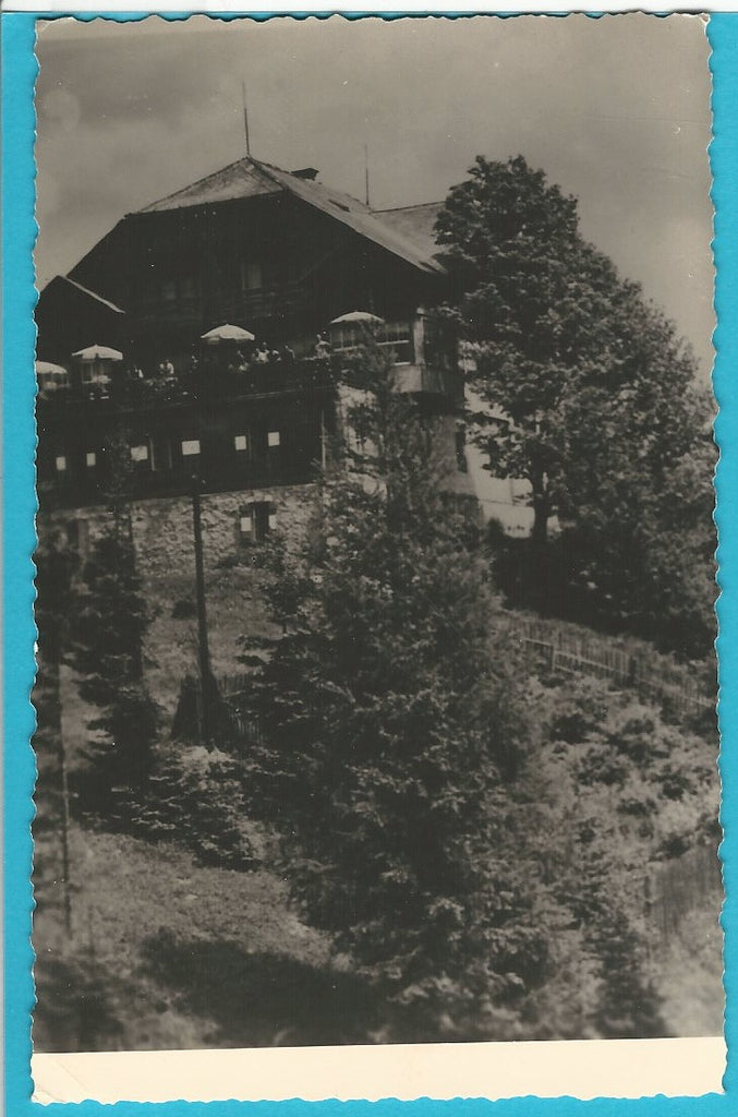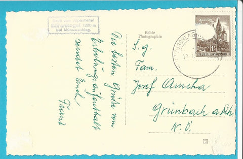 AK Gruß vom Alpenhotel Bärenkogel bei Mürzzuschlag. Gelaufen. Kleinformat. Zustand: Kleberückstände an Rückseite, linke Ecken geknickt.