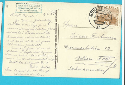 AK Gruß vom Alpenhotel Bärenkogel bei Mürzzuschlag. Gelaufen. Kleinformat. Verlag: Böhm. Zustand: gut.