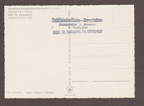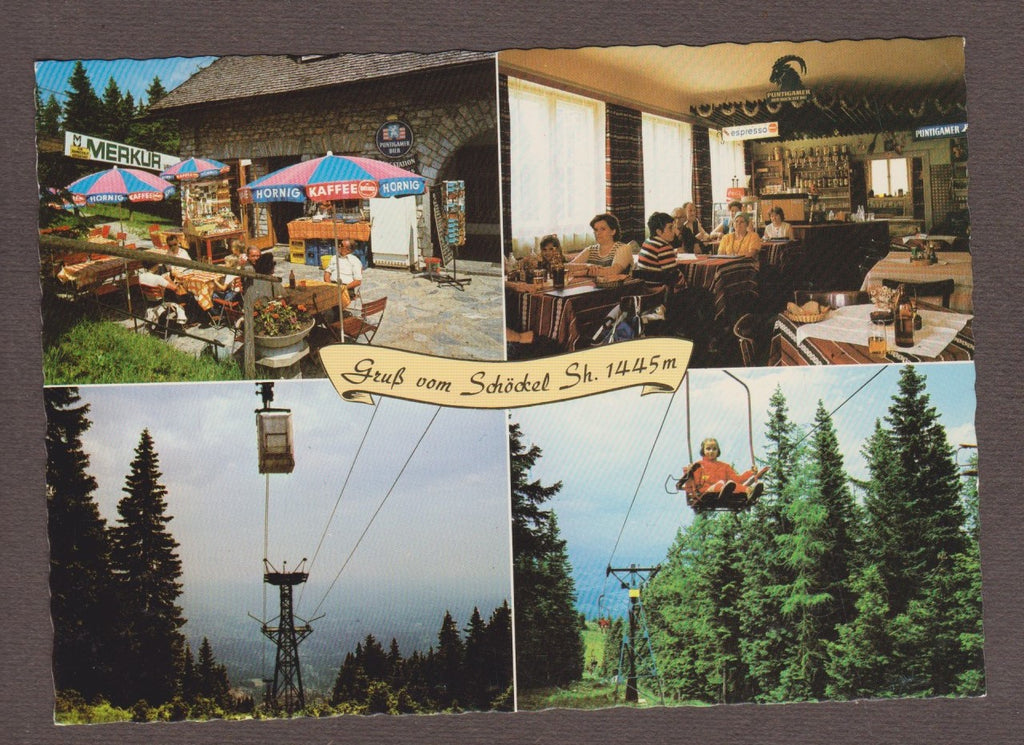 AK Gruß vom Schöckel. Gasthaus Bergstation Schöckel. Pächter Fam. Toblier. Gelaufen. Großformat. Verlag: Winkler. Nummeriert: 3723 FG. Zustand: gut.