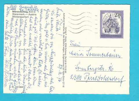 AK Grüsse aus Mürzzuschlag. Gelaufen. Großformat. Verlag: Hruby. Nummeriert: 6534. Zustand: rechtes oberes Eck geknickt.